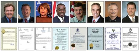 伊利郡(Erie County)的郡执行长官和尼亚加拉市(City of Niagara Fall)市长也分别代表水牛城大都会区的一百多万民众,向神韵艺术团发来褒奖,并设定五月二十七日为“神韵日”。