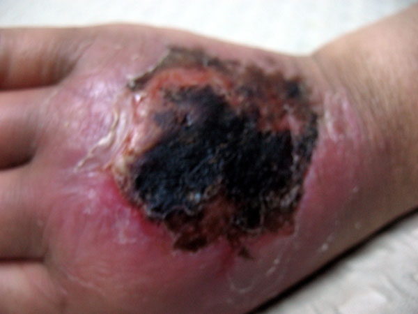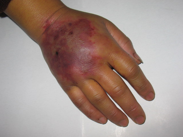 我回家后每天除了学法就是炼功,当我炼功时,就象没有受伤一样,我知道是师父在加持我,我几乎没有疼痛的感觉,只感到手很热,伤的地方摸上去很凉。 图3、4,是受伤14天后拍的照片。