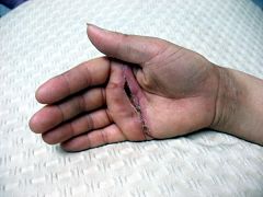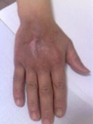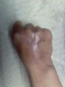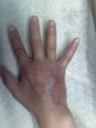 在受伤期间我什么事情也没耽误。我没有打针,没有吃药,没有敷药,甚至没有清洗伤口,现在我的手行动自如除手背上的伤疤外,手心几乎恢复从前的样子(图5、6)。