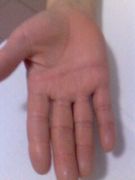 现在我的手握拳伸展自如(图7、8),早在一个月前就已上班工作。