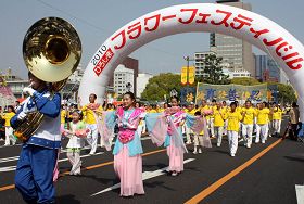 “广岛鲜花节”是日本五月黄金周的三大庆典活动之一,每年有约一百五十万人前来参加。除国内团体外,还有来自夏威夷、韩国、巴西等国家和地区的团体前来参加游行和表演。