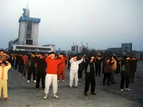 照片:一九九八年沈阳夏宫广场的法轮功炼功场面