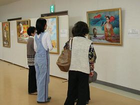 居住市内的竹村(Mr.Takemura)先生,看起来大概五十多岁。他已来过美展几次了,对法轮功被迫害表示非常的同情。上月末在伊那市(Ina-City)生涯学习中心举办的“真善忍国际美术展”期间,他在观看了画作之后说,他平常在练气功,他一进到这个美展里来,就感受到了非常强的祥和的能量场,每幅画的色彩运用都恰到好处,要表达的主题鲜明。他立即请了《法轮功》一书。这次驹根市的美展,他也来了,又请了《转法轮》这本著作,并热情地帮助解说员讲解。