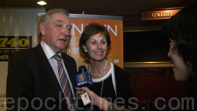 安省皇家博物馆名誉主席海乐•沃尔克(Harriet Walker)和曾任安省厅长的先生高登•沃尔克一起观看了神韵晚会