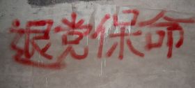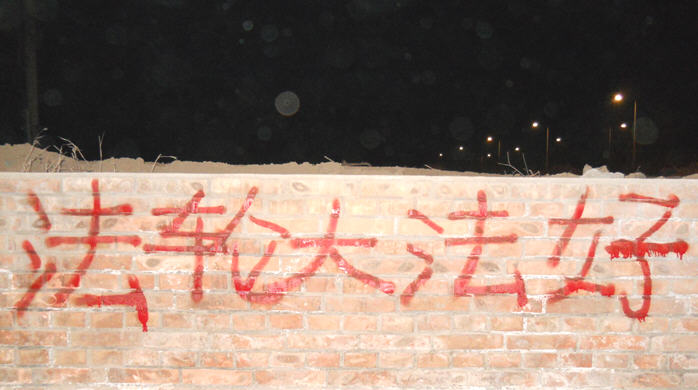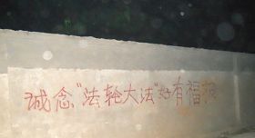 • 照片:河北保定法轮功学员在五月十二日夜写的真相标语