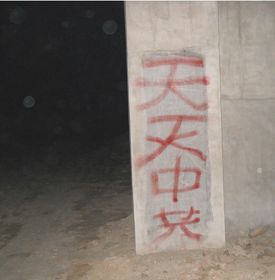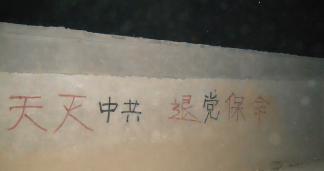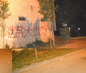 照片:河北保定法轮功学员在五月十二日夜写的真相标语