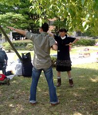 ![]() 在名古屋大学“第51届名大祭 ”上,有缘人当场学炼法轮功 |