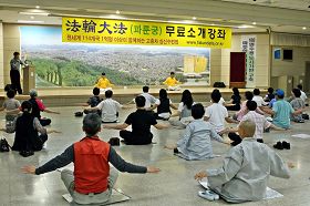 ![]() 二零一零年六月五日,在清州市兴德区厅举办法轮大法介绍班,吸引很多特意来学功的人们 |