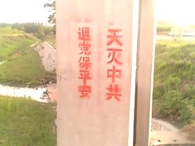 图片:新年期间中国大陆出现的法轮功及退党真相标语