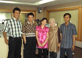 【明慧网二零一零年六月十五日】二零一零年六月十三日,受印尼官方电台Radio Republic Indonesia(RRI)邀请,印尼法轮大法佛学会会长盖托特(Gatot)和法轮功学员阿迪(Adi)、克里斯蒂娜(Chirstina)、普瑞玛(Prima)在该电台直播室接受节目主持人采访并回答听众的问题。