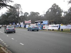 二零一零年六月二十日下午,中共党魁之一习近平带领二百多人到达澳洲首都堪培拉,行程中处处遇到法轮功学员抗议中共迫害的队伍。