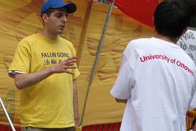 双峰会期间 法轮功学员和平抗议中共迫害(图)
