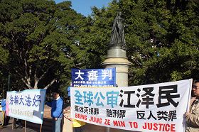 张女士也感慨地说:“如果澳洲政府为中共迫害法轮功的罪魁祸首江泽民提供豁免权,提供逃脱法律制裁的便利,就等于鼓励别国的独裁者迫害信仰和侵犯言论自由,等于是协助中共进一步迫害在中国的法轮功学员,那将是澳洲政府永远的耻辱。在这里我们呼吁澳洲各界关注这个案子,澳洲的律政部重新审视诉江案,不再出面为人类共同的罪犯江泽民做豁免权辩护,站到正义和良知的一边。”