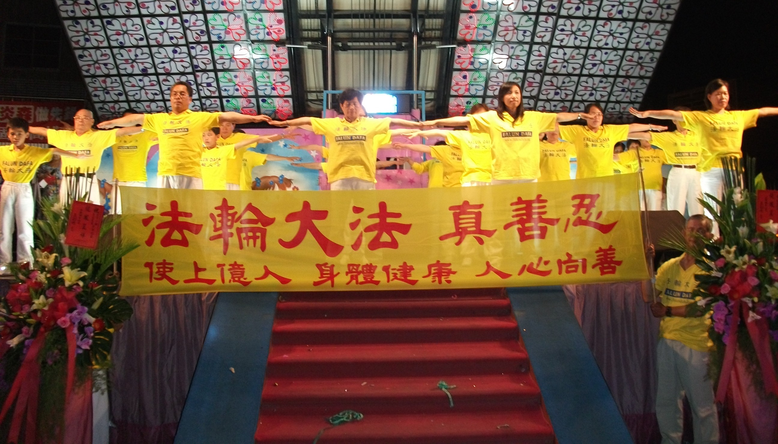 学员们接着演示五套功法,现场呈现一片祥和的气氛。学员并介绍,市民们若有兴趣认识法轮功,可于高雄县路竹乡周一、三在社南活动中心及周四、五在路竹中学县名学苑,晚上七点半参加活动,现场并分送法轮功简介资料、系有小莲花的“法轮大法好”书签、气球给与会人员,结下良善的缘份。