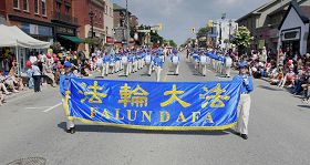 【明慧网二零一零年六月六日】(明慧记者章韵多伦多报道)二零一零年六月五日,加拿大多伦多天国乐团应邀参加了密西沙加市节日游行,受到沿途中西方观众的赞赏。雄壮的音乐、整齐的步伐让人们感到振奋,不少观众表示要多了解法轮功,开始学炼功法。