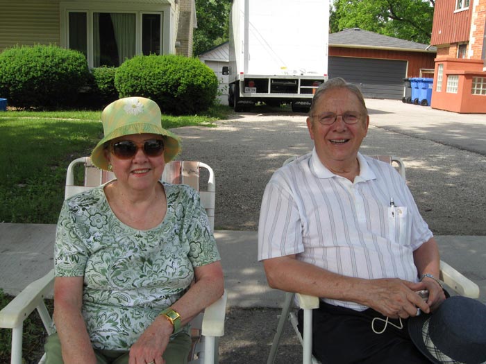 '西人观众爱兰和先生弗兰克感谢天国乐团给社区做贡献。'