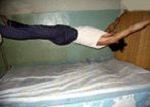 4、吊床:一般由男警察实施,先将受害人的双腿、臀部至脚跟用长木板捆牢,然后将双手分别铐在铁床上层的下面(有时一手高一手低),小肚子压在铁床栏杆,人的上半身、头部是悬空的,全身大约90度的弯,一至更多天,受刑后腰不能直,腿的大肋拉伤,双手腕麻木,更不容易恢复正常行走。二零零八年七月十四日从北京劫持到马三家的五十名法轮功学员中,有六、七个被动用此刑。辽宁当地法轮功学员多人被动用此刑受伤更多。