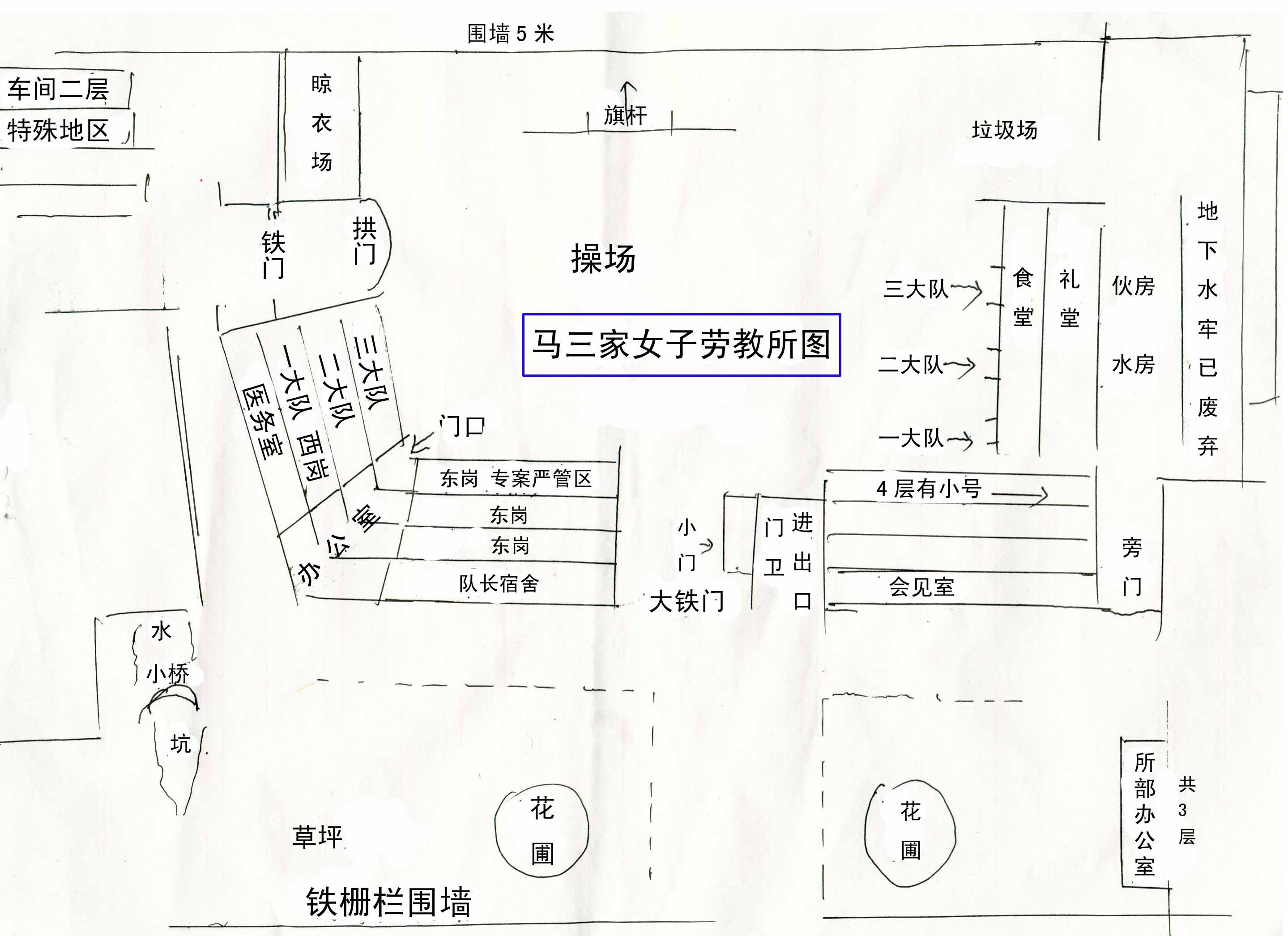 马三家女子劳教所的宿舍区看上去整齐干净,样板被子见楞见角,褥单统一花色,但这些都是给外人和上级看的。对于被非法关押在这里的法轮功学员来说,环境极其邪恶。平时白天不准法轮功学员坐卧,不准使用样板被,所有法轮功学员的行李衣物等全部打包送东岗库房,晚上取回,天天如此。食物只有米饭、或混合面的馒头加水煮菜,一年三百六十五天除年、节稍有改善,都是最低价的菜。吃的菜汤经常泥沙沉积碗底,严重的时候不敢用牙嚼。四、五个人甚至更多的人分用一壶开水。
