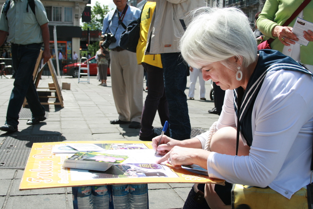 【明慧网二零一零年七月十九日】(明慧记者容法比利时报导)二零一零年七月十七日,欧洲法轮功学员在布鲁塞尔举办系列活动,抗议中共持续十一年的残酷迫害
