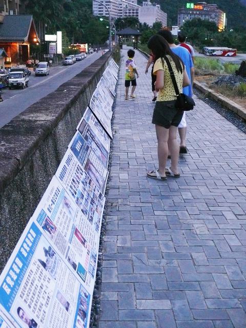 大陆游客一下车即被沿路的真相展板吸引高精度图片