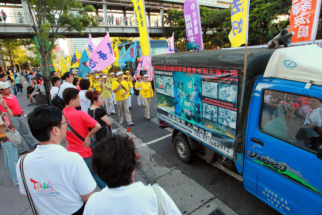 【明慧网二零一零年七月十九日】(明慧记者李慧容、沈容台湾台北报导)法轮功学员反迫害十一年之际,二零一零年七月十八日,台湾北区法轮功学员于台北信义广场举办“彰显正义良知、制止中共血腥迫害”集会游行、悼念活动,并呼吁国际社会善良正义人士,一起挺身制止中共残酷无道,结束这场人神共愤的人权迫害。