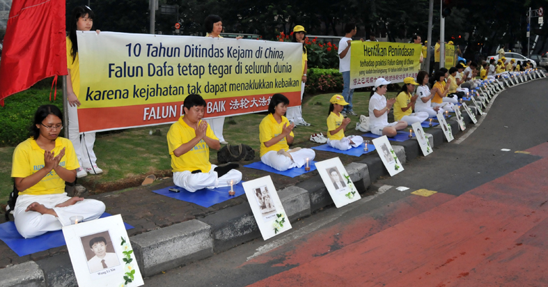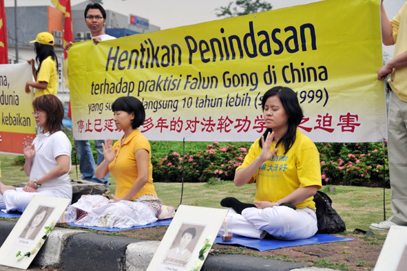 印尼雅加达法轮功学员抗议中共十一年的残酷迫害