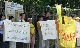 ![]() 法轮功学员在中共驻苏黎世领馆前抗议迫害 |