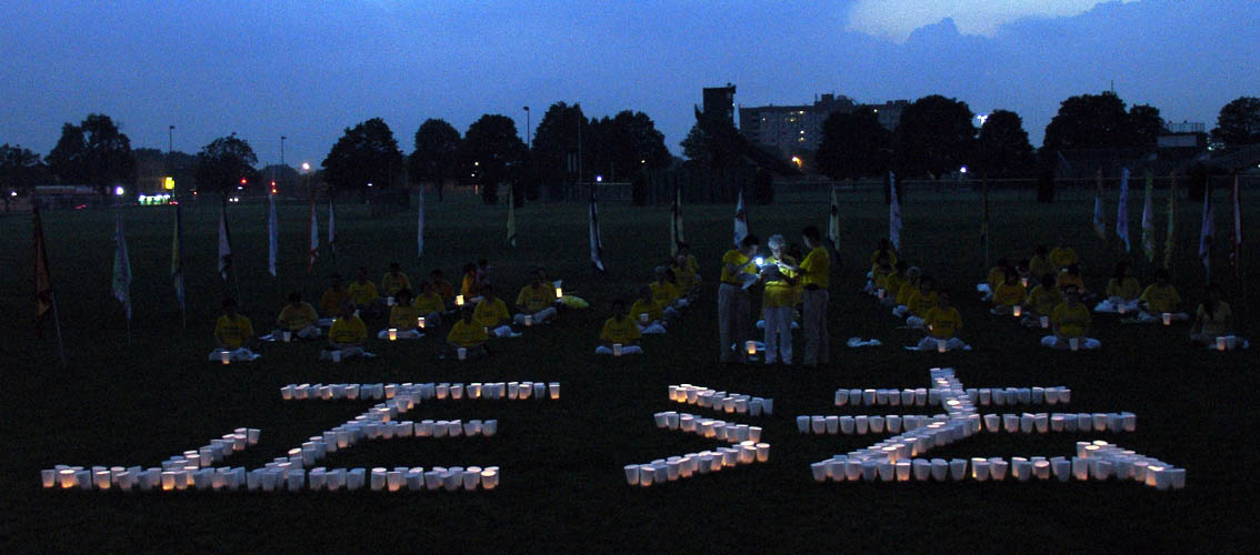 在余辉落下,大地归于平静之际,学员们捧起了一盏盏烛火,悼念被迫害致死的大陆法轮功学员们。十一年前曾在大陆经历“七二零”的莉莉女士在接受采访时说:“今天坐在这里,心情很沉重,我们是在用这种方式无声的声援大陆学员,我们和他们在一起;同时呼吁正义良知,站出来一起制止迫害!”
