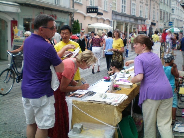 【明慧网二零一零年七月二十二日】(明慧记者郑晴奥地利报道)位于奥地利下奥地利州的小镇克瑞姆斯,每年的夏季都要举办当地闻名的杏子节庆祝活动,这个庆祝活动在当地已经有一百多年的历史了。二零一零年的杏子节,这里的人们了解到了法轮功和发生在中国的迫害