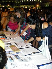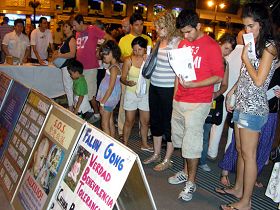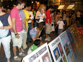 几乎所有经过集会现场看了反迫害图片、了解了真相的民众都会来到征签台前,签名支持声援法轮功十一年来持续不断反迫害的和平壮举。很多人祝愿法轮功学员好运。另据不完全统计,在西班牙目前已经收集到超过二十万人的声援法轮功的签名。