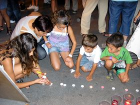 ![]() 孩子们在母亲的带领下,点燃自己的小蜡烛,为中国大陆法轮功学员献上自己的一份纯真祝福。 |