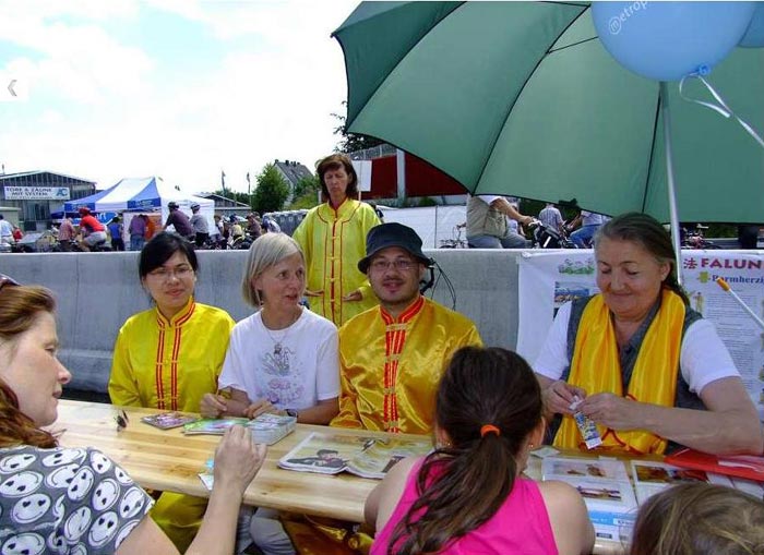 有很多人不明白为什象么这样好的功法在中国被禁止,法轮功学员就耐心地给他们解释,这些迫害就当年德国的纳粹一样,被迫害者是无辜的,是中共的邪恶本性决定了它不能容忍亿万民众对“真善忍”的信仰。很多人明白了迫害的真相。活动快结束了还有一对德国夫妇在反迫害征签表格上分别签了字。