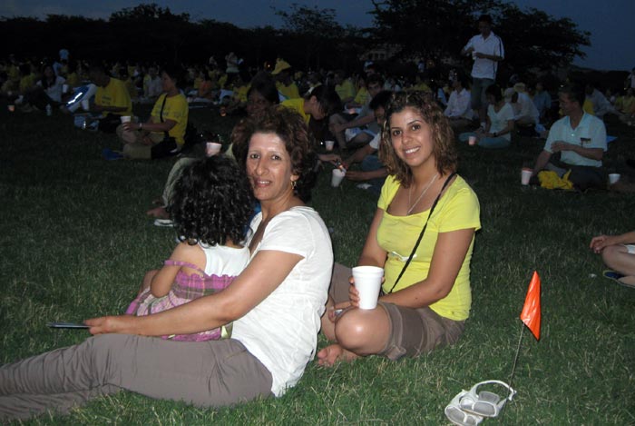 来自摩洛哥的法都(Fadoua)和弗佳(Fougia)是两姐妹,她们二十二日晚路过聚会会场时,接到法轮功学员递上的真相资料后,决定一起参加烛光悼念活动。法都说:“我们是来DC探望哥哥的,路过这里,看到这个场面,听了法轮功学员的介绍,得知这么一群善良的人在中国受到迫害,我感到很悲痛。我知道我应该站到他们这一边,我觉得任何有良心的人都会这样做的。也就是我今晚为什么和我姐姐在这里的原因。”
