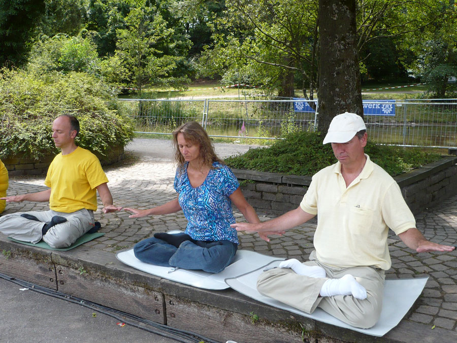 ![]() 法轮功学员在卡尔斯鲁尔城市节日是展示功法 |