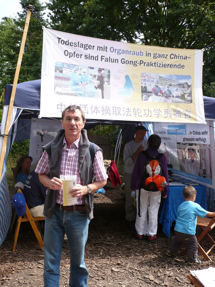 “太可怕了!就象纳粹集中营!”彼得(Peter)带着他的朋友们又折回来。刚刚这位德国老先生听说了在中国信仰“真善忍”的人们被中共活体摘取器官后,极其震惊和痛心。在签名反迫害后,他还久久徘徊在展位前。刚离开,彼得又把自己的朋友们带回来,告诉他们这些真相。
