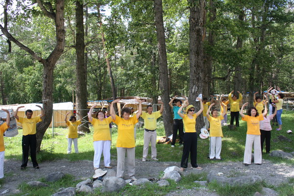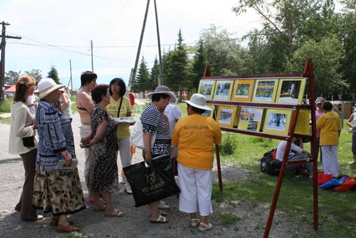 七二零之前,西伯利亚地区的法轮功学员聚集在俄联邦布里亚特共和国(Respublika Buryatiya)的阿尔善(Alshan),在那里举办了系列集体学法交流和讲真相活动。当地民众看到了法轮功学员的美好,了解了中共邪恶迫害的真相,一些民众询问炼功点的信息,打算学习功法。