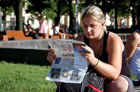 七月二十日下午,圣彼得堡的法轮功学员在市中心举办了讲真相活动。尽管烈日当头,学员们坚持举横幅、演示功法和向人们派发真相资料。川流不息的人群中不断有人停下来,详细询问法轮功真相,谴责中共的迫害;还有很多早已知道真相的人们想要学功,向学员们了解哪里能买到法轮功的书籍。