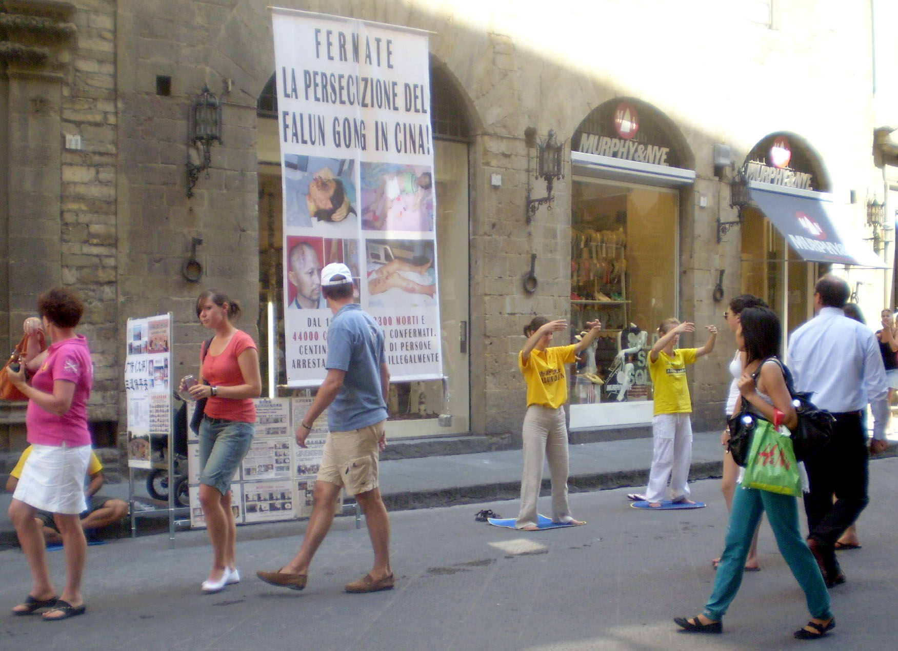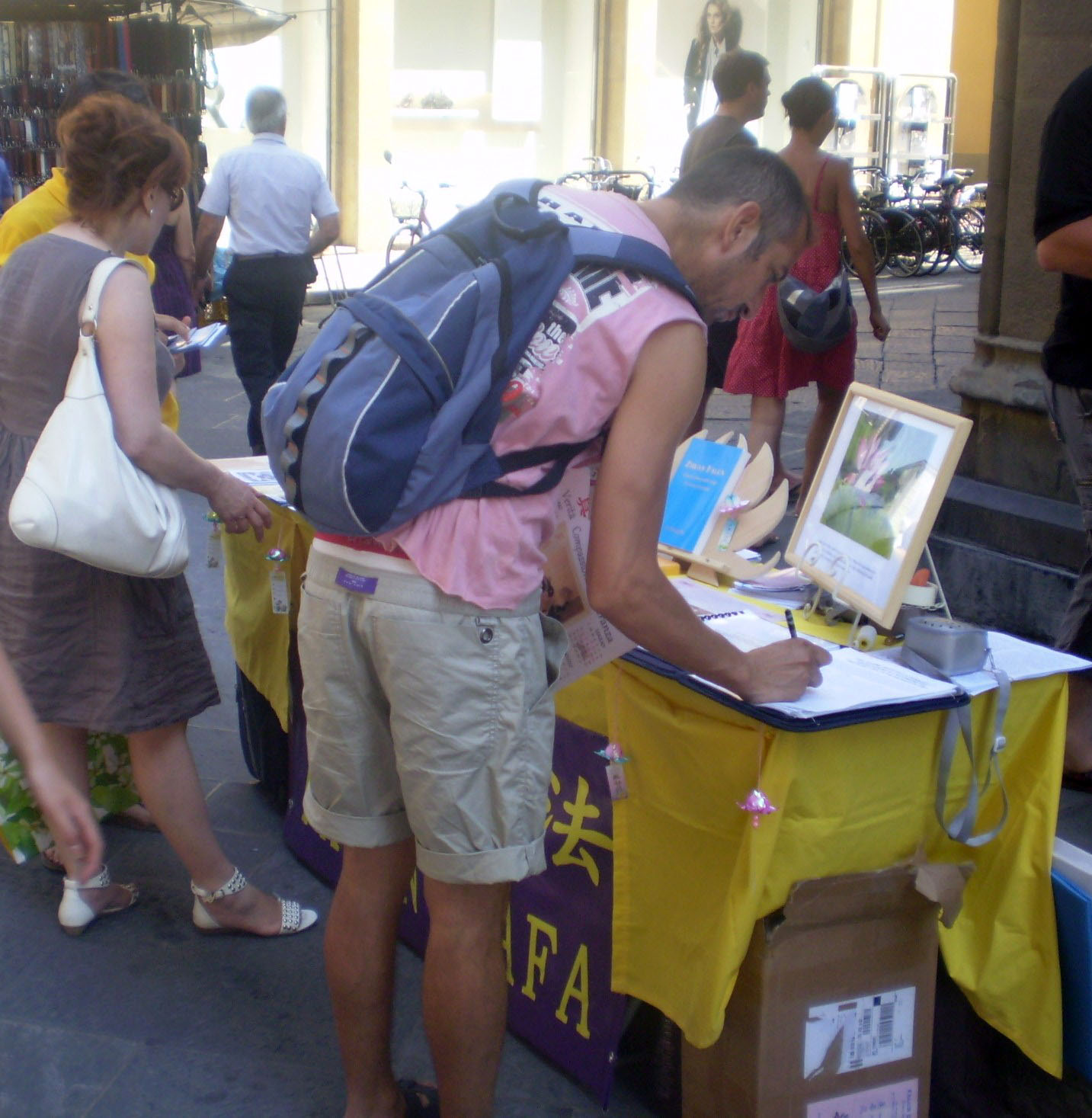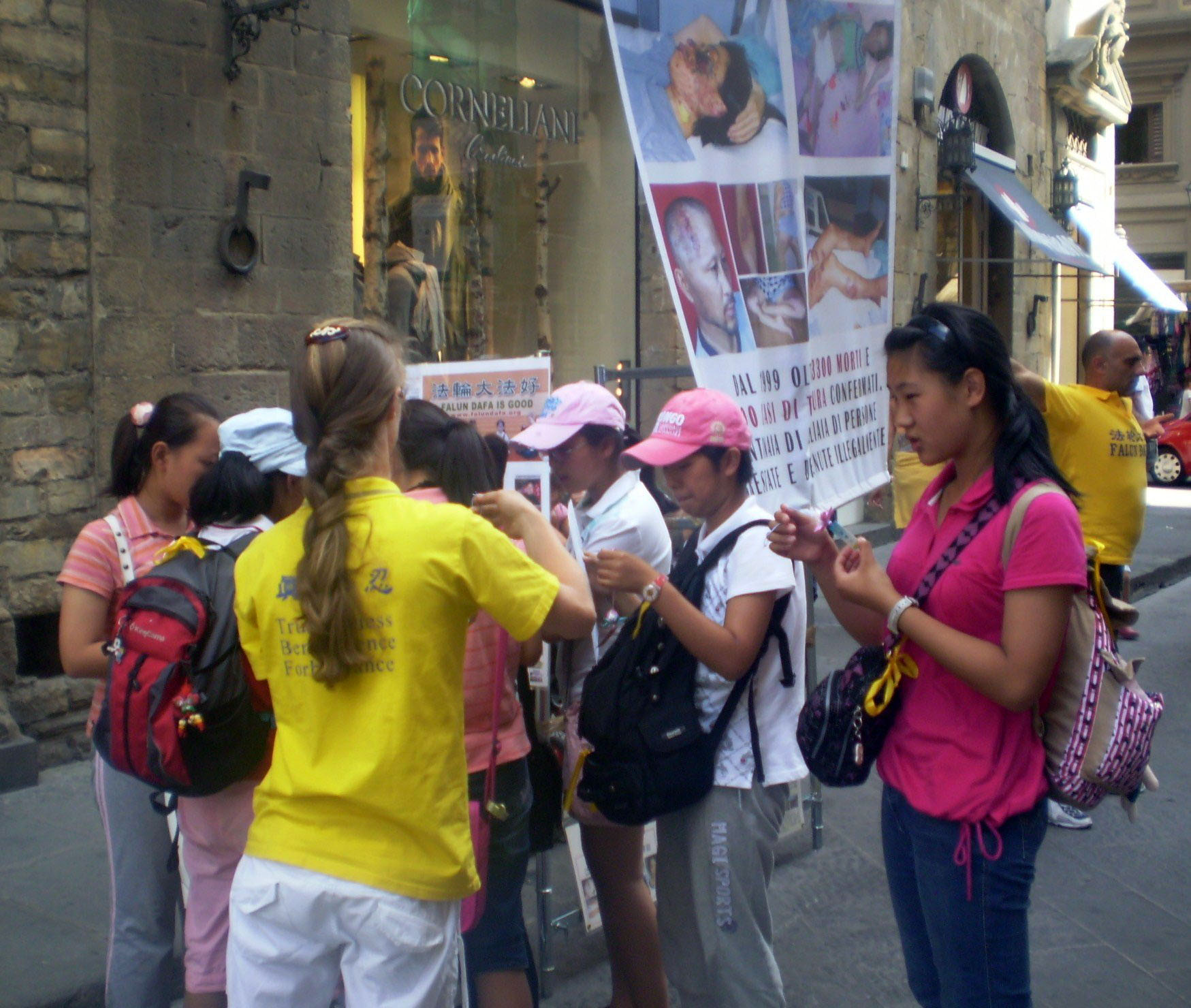【明慧网二零一零年七月二十九日】二零一零年七月二十日,意大利西部塔斯卡尼地区的学员在著名的旅游胜地佛罗伦萨集会,举办大型讲真相活动揭露迫害,讲述中国国内的法轮功学员承受十一年无名苦难的历程。全天的活动都在佛罗伦萨老城最热闹的街道上举行,这里是众多游客的必经之地。