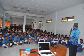 二零一零年七月二十四日早上七点,在印尼巴厘岛的帕东县,四百名技术学校的学生在蒙威广场学炼法轮大法的五套功法。