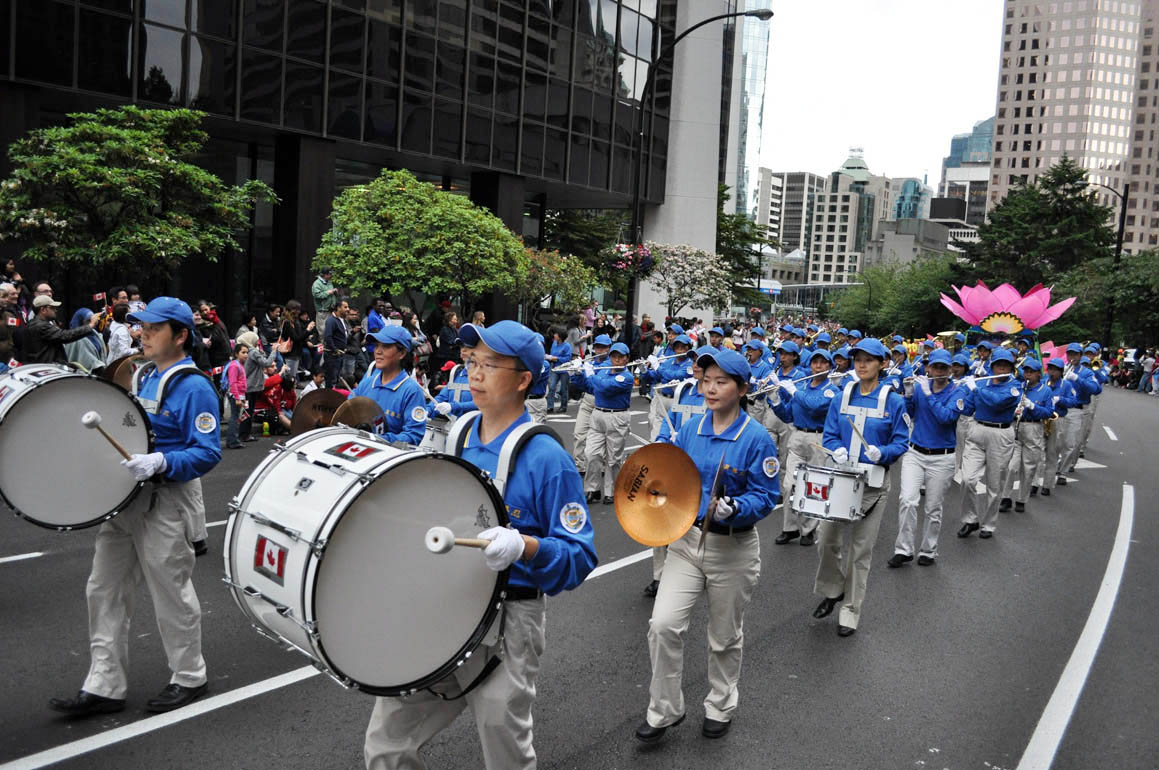 同一天,温哥华地区的法轮功学员还参加了瑞彻蒙德(Richmond)市的国庆节暨“三文鱼节”游行。
