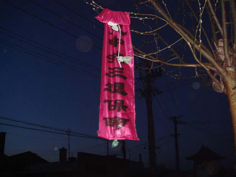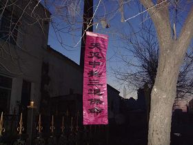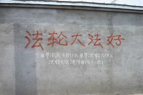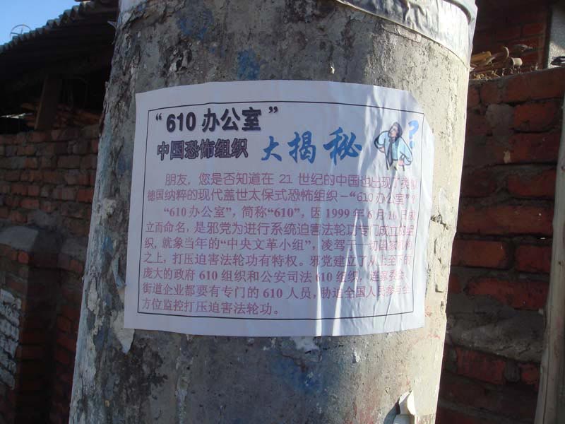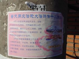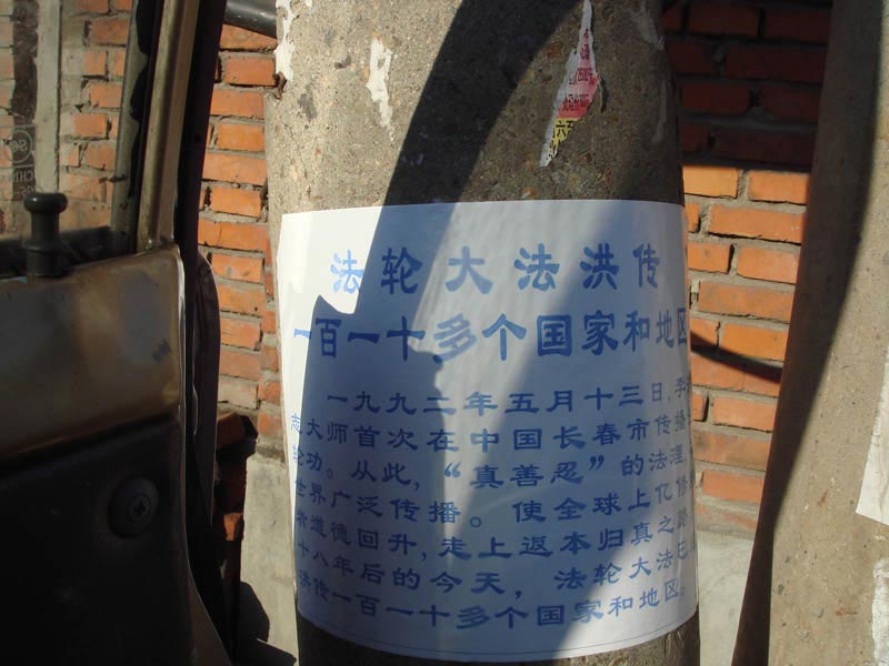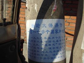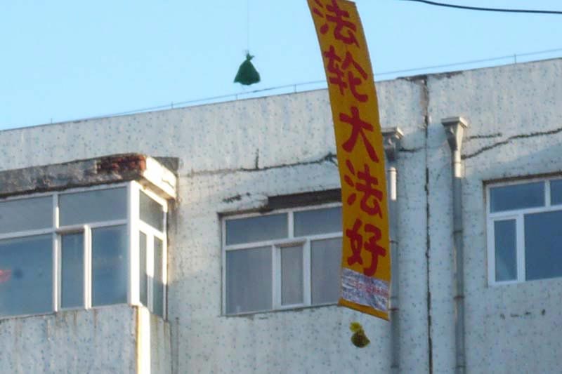 东北某地五月十三日随处可见法轮功真相条幅粘贴