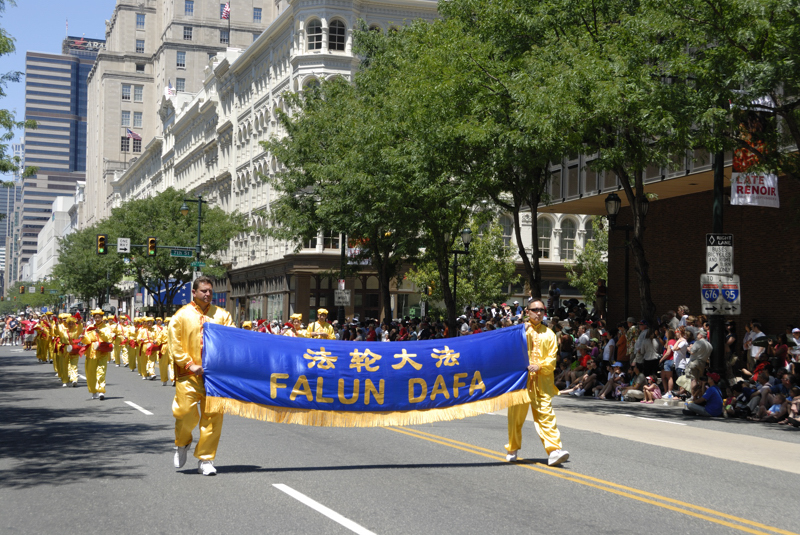 ![]() 费城法轮功学员参加主题为“生命、自由与你”的独立日欢庆游行 |