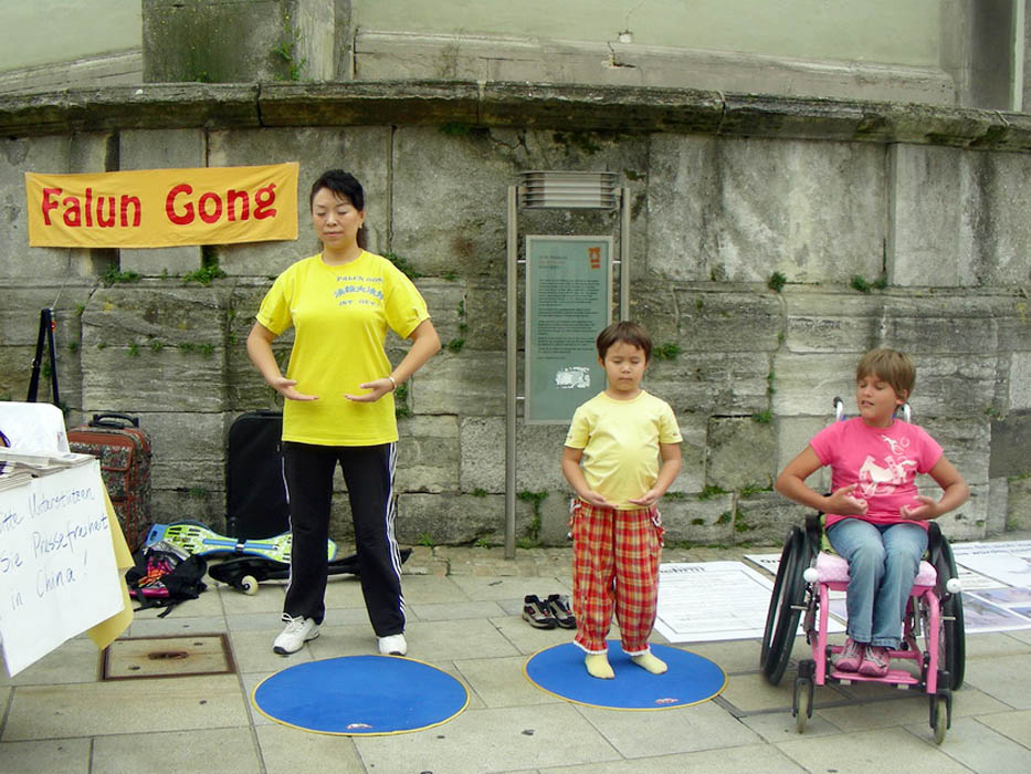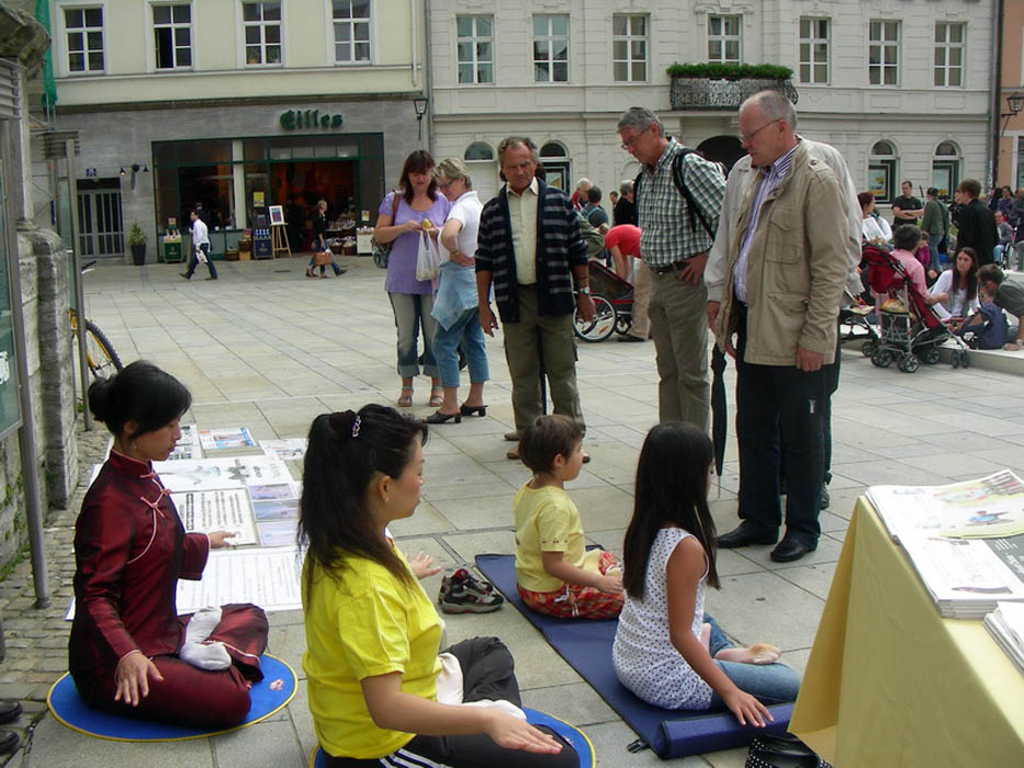 在集会现场,法轮功学员组成的天国乐团首先为当地民众演奏了《法轮大法好》、《法鼓法号震十方》、《法正乾坤》、《送宝》和《法轮圣王》等曲目约半个小时,引来阵阵喝彩。之后法轮功学员分散在尤维尔广场和市中心周边的公园向当地民众展示法轮功的五套功法,吸引了许多路人驻足观看。有的人当场学炼法轮功。玛丽莲表示,魁北克城的民众对法轮功非常感兴趣,经常打电话来询问如何学功。