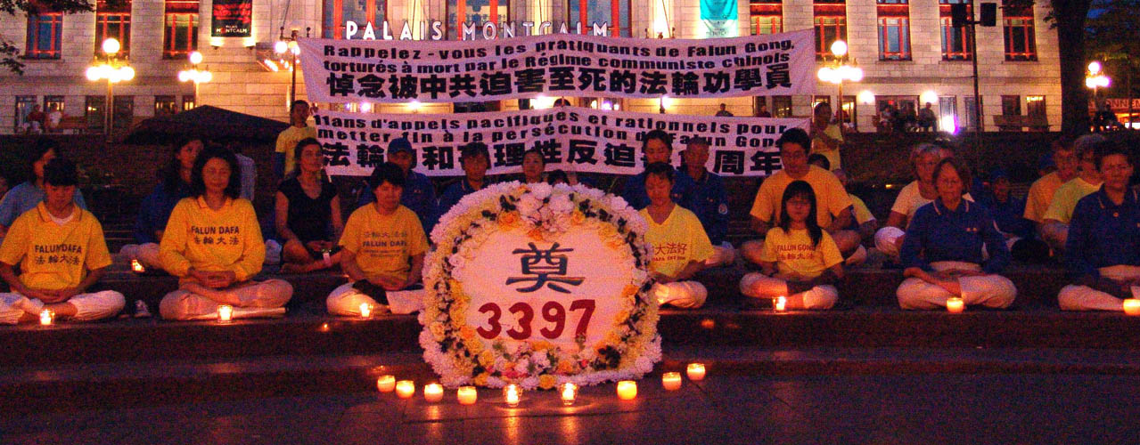 晚上八时,夜幕降临,法轮功学员举行烛光夜悼,悼念在中国大陆遭受中共迫害而失去生命的同修。