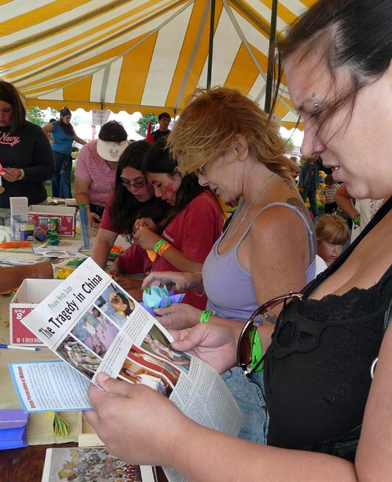 缅因州的特里莎•奥迪特(Trisha Audette)女士看到法轮功学员受中共迫害的真相资料后,非常震惊和愤慨于中共的酷刑,毫不犹豫地在反迫害的请愿书上签下自己的名字,并鼓励同来的母亲和十多岁的儿子签名,共同谴责中共的暴行。