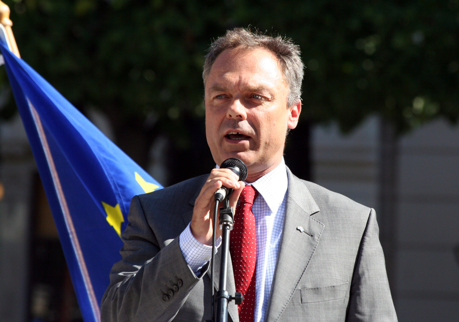 ![]() 欧盟议员霍克马尔科在演讲后接受采访 |