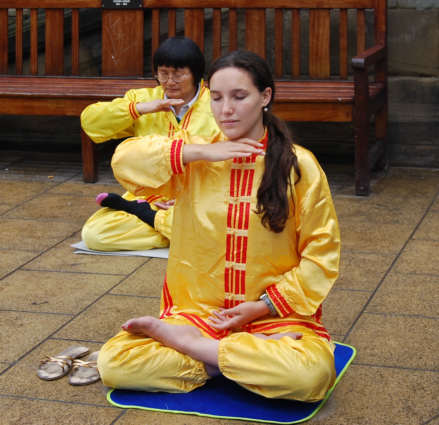 ![]() 二零一零年爱丁堡国际艺术节期间,法轮功学员在闹市街头炼功 |