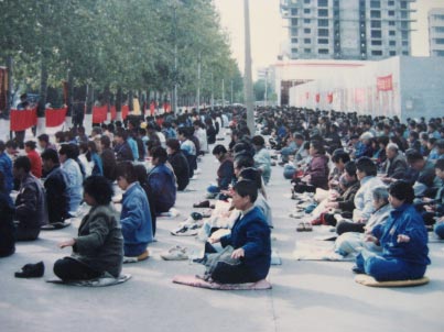 一九九九年“七•二零”前三四年的时间,在每个临近五点的清晨(冬季为五点半开始炼功,其他三季为五点开始炼功),城市还在睡着,乡村还未升起炊烟,成千上万的男男女女、老老少少,或步行、或骑着单车,有的带着坐垫,或一个人或一家人,轻盈的安静的穿过大街小巷,来到居住地附近的街边空地或街心公园,人们三五成群静静地等候或轻轻的交谈着,相识不相识的人们,都会微笑着示意,一切自然而祥和。五点整,数十人或上百人的炼功点不用人管,该到点时人们自觉的排成整齐的队形,随着和缓悠扬的炼功音乐,舒缓的炼功。这样的情景日复一日,年复一年,成为清晨固定的风景。而且风雨不误,雷打不动。一方水土养一方人,秦皇岛这座美丽的滨海城,沐浴着“真、善、忍”佛法的光芒。同事、同学、客户、上司,你认识的人不一定在哪一天的清晨或在哪个集体炼功弘法的场所才知道是同修,彼此真心为对方能得到这万古难遇的正法而高兴。