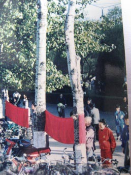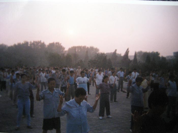 ![]() 法轮功学员清晨在汤河公园炼功(时间大概在一九九六至一九九九年之间) |