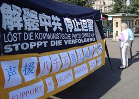 瑞典游客支持法轮功 谴中共迫害